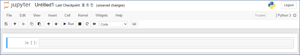 - ln [ ] : 이부분은 셀이라고 부르며 파이썬 코드를 입력할 수 있는 부분이다.