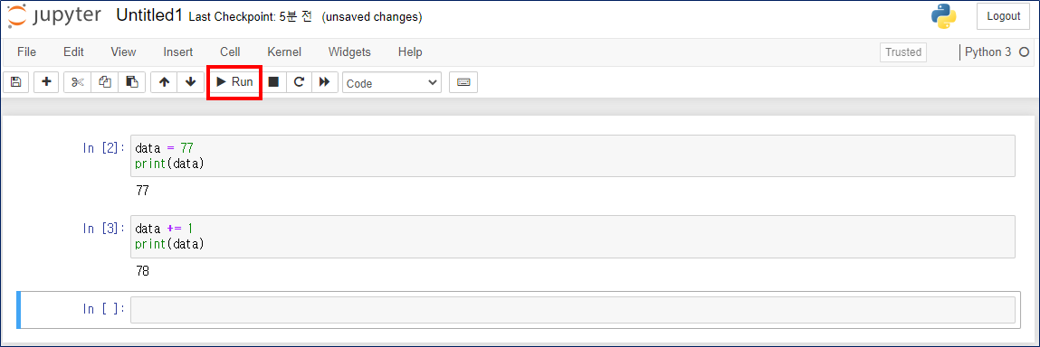 ex) 두 번째 셀에서 사용한 data는 네 번째 셀에서도 사용이 가능하다.
