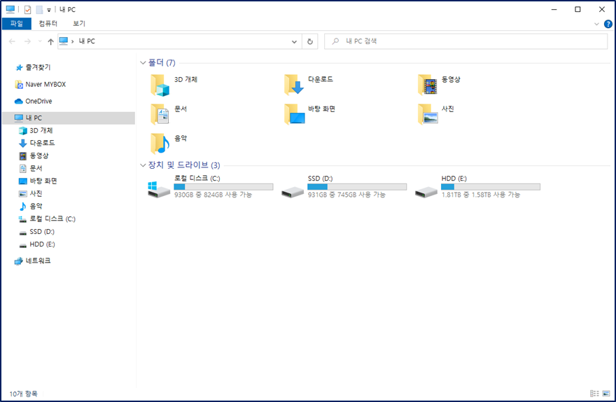 5. 설정 완료 후 시작 + E 를 눌러 파일 탐색기를 열면 내 PC의 경로가 나온다.