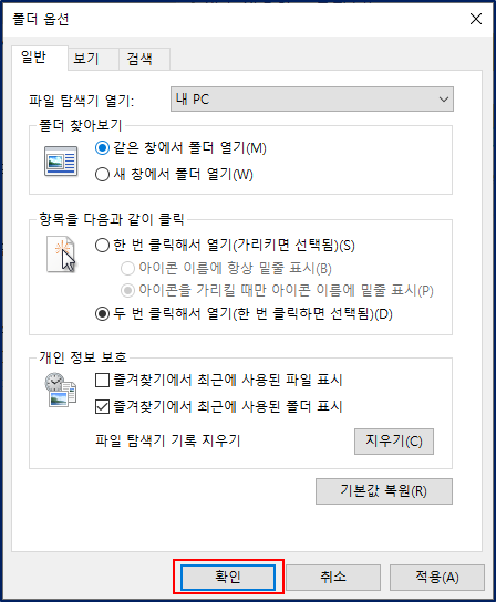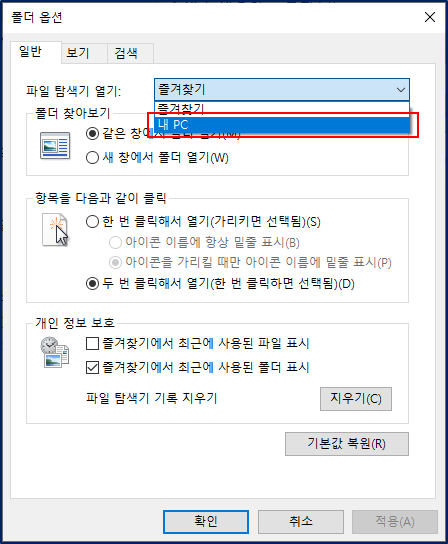 내 PC 기본 디렉토리가 나오도록 바꿀 수 있다.