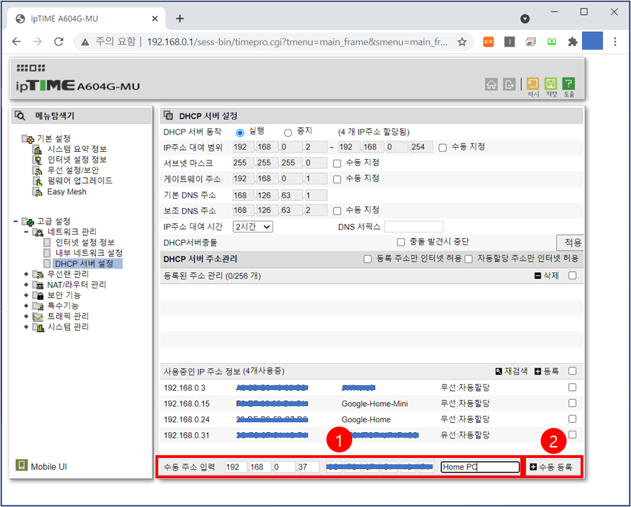 오늘은 ipTIME 공유기에서 내부 ip를 수동 할당 하는 법에 대해 알아보는 시간을 갖도록 하겠다.