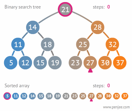 - 노드의 왼쪽 자식은 부모의 값보다 작은 값을 가져야 하며 노드의 오른쪽 자식은 부모의 값보다 큰 값을 가져야 함.