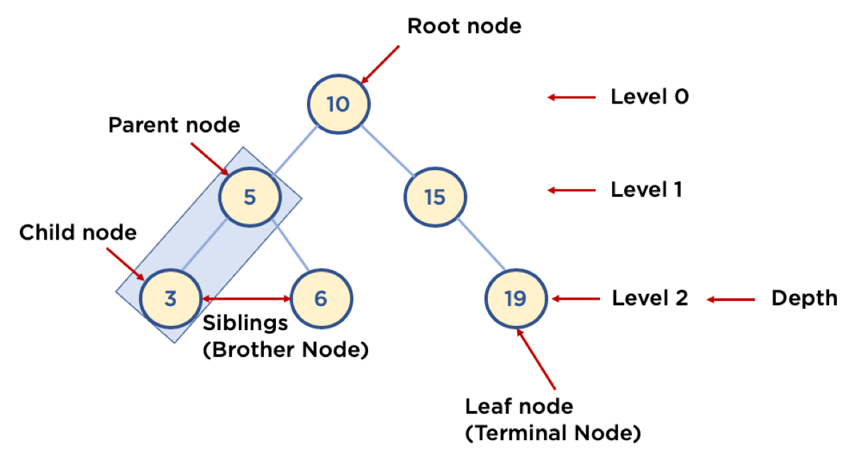 * Node : 트리에서 데이터를 저장하는 기본 요소 (데이터와 다른 연결된 노드에 대한 Branch 정보 포함)