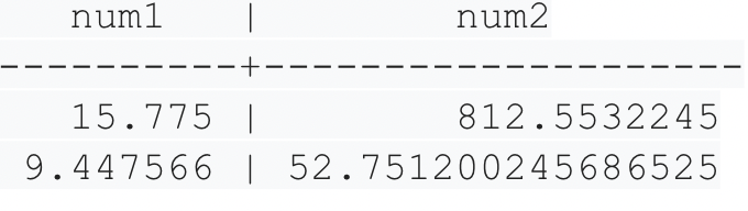 INSERT INTO number_data_types VALUES (2.1357987654, 2.1357987654, 2.1357987654);