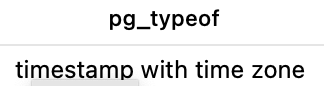 SELECT PG_TYPEOF(CURRENT_TIMESTAMP);