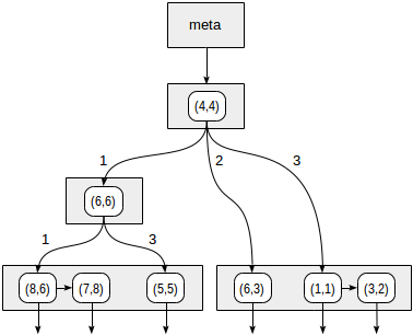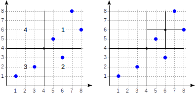 수학시간에 배운 그래프에서 사분면을 통해서 각 레벨에 최대 4개 노드를 가지며 인덱싱을 한다.