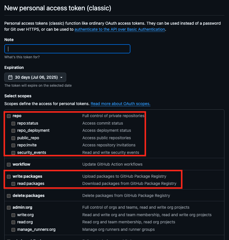 1. GHCR Personal Access Token 생성